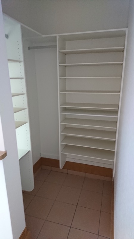 玄関に大容量のシューズボックスを配置して豊富な収納スペースを確保。 外観のカラーにあわせたフローリングが統一感を醸し出しています。