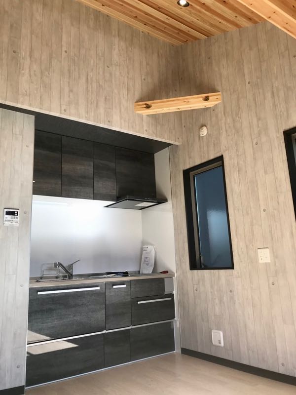 外観イメージにあった自然素材とモダンカラーを使った内装。